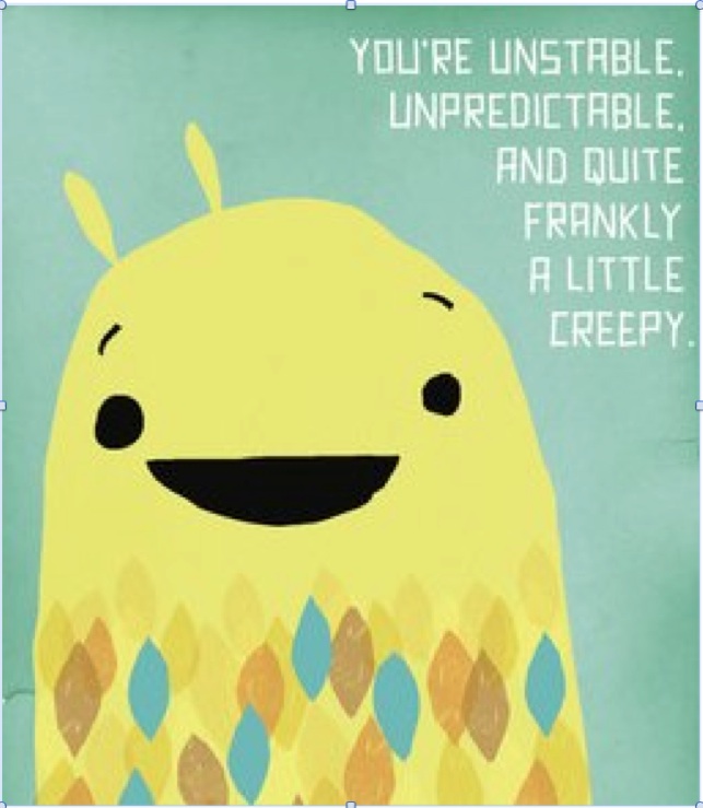 –Laughter at and with my kids, they are so weird they make me feel normal.